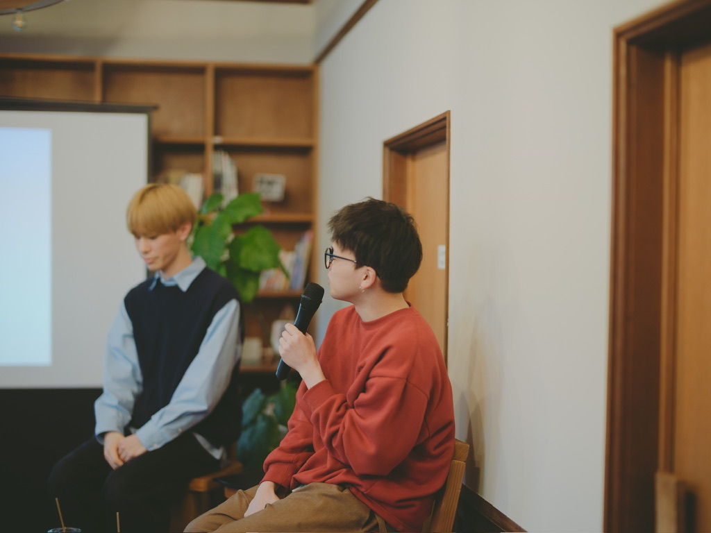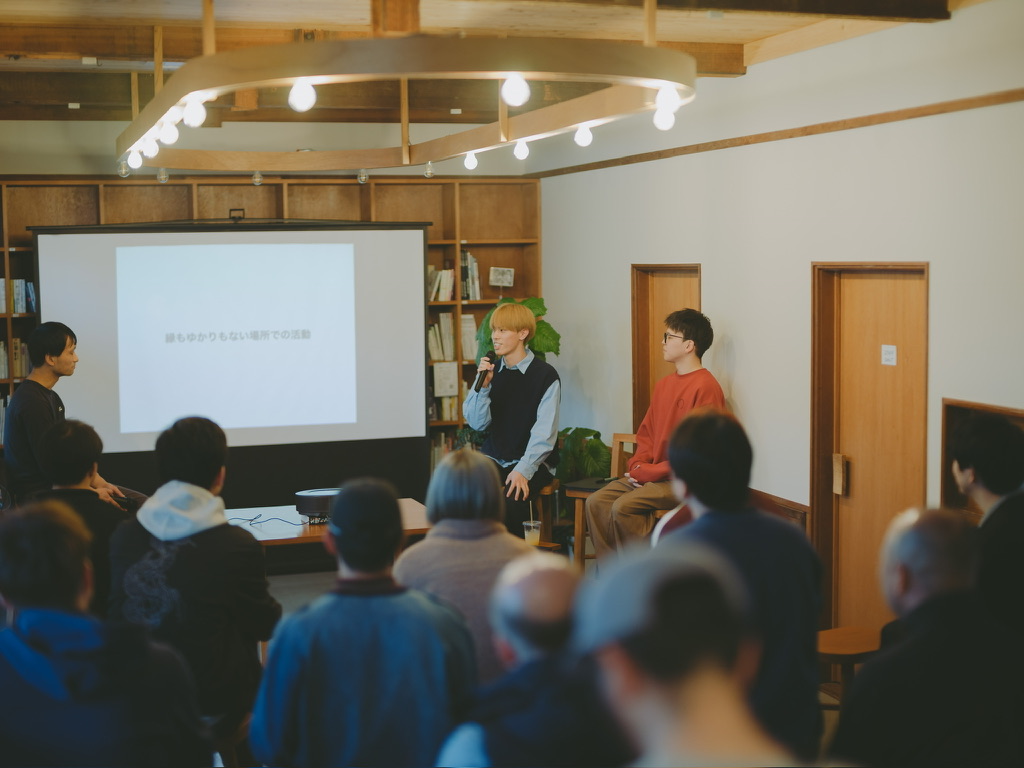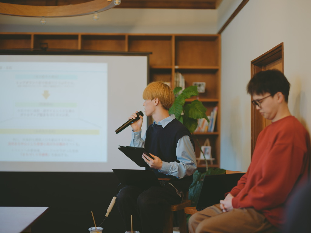 イベントタイトルの通り、2025年度において、佐伯の地域を舞台として大学の卒業研究に取り組んだ二人のの学生(日本文理大学所属)による”卒業研究発表”を聞ける機会を開催。大学のない佐伯市では、大学生という世代に触れたり、出会う機会がそもそも多くはなく、実際に大学でどのような学びを行い活動してるのか、また逆に佐伯を題材にした研究がどのような成果を得られたのかを佐伯市民が知る機会として、ゲスト大学生にオファーさせていただき実現しました。