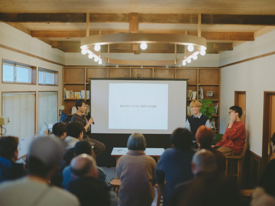 後半の第二部では、大学生二人とKIISAの河野によるクロストーク。元々県外から大分に進学で来られた二人にとって”佐伯”という「縁もゆかりもない場所での活動」はどうでしたか?二人とも実験的な取り組みを用いたテーマであったため、その中での「想定内と想定外」の印象的な出来事。研究に取り組む過程で得られた「今後に活かせそうな気づき」なども話題にクロストークを展開。