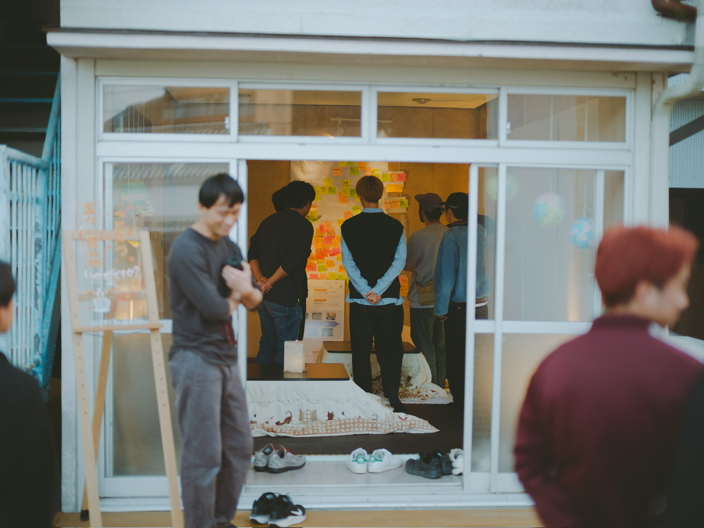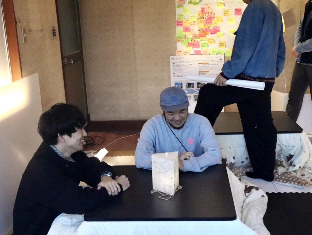 第二部までの休憩時間を用いて、阿閉くんが研究の際に行った”こたつ”を用いた実験的空間の見学・体験も参加者に行ってもらい、「こたつがあるだけで落ち着く」「一度座ると長居しちゃいそう」などの声が参加者から聞こえてました。